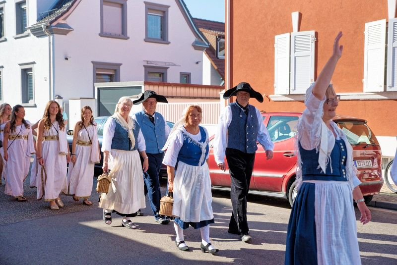 Im Ort selbst wurden die letzten Kriegsschäden beseitigt, eingeweiht wurde eine Straße nach Waldsee, ein Rathaus, eine große Turn- und Festhalle, ein Schöpfwerk, die Schillerschule, eine Motorfähre und die wieder aufgebaute katholische Kirche. Die beiden Lichtspielhäuser hatten stets „volles Haus” und Vereine wetteiferten mit den längsten Omnibustagfahrten. So fuhr beispielsweise der Männergesangverein einmal gar mit sechs Bussen ins weite Land. Doch auch das gab es: 1954 ein Orkan über der Rheingemeinde und 1955 ein Extremhochwasser.