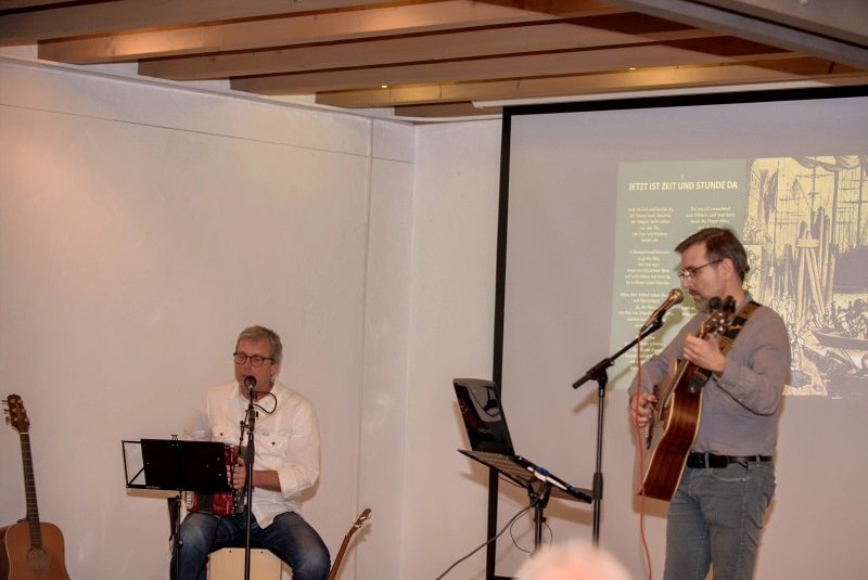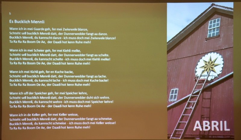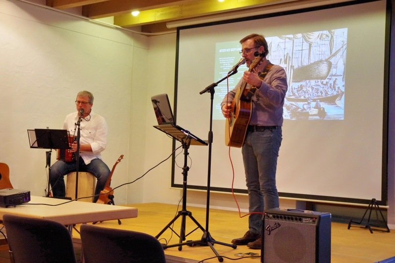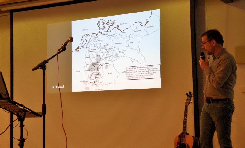 Die beiden Musiker der „New Paltz Band“, Uwe Volk & Michael Werner, referierten über die Massenauswanderung von Deutschen nach Amerika im 19. und 20. Jahrhundert. Aufgelockert wurden die Vorträge mit Musik in Pennsylvania Dutch, dem Dialekt der deutschen Minderheit in den USA. Co-Referent Horst Hook vom Heimat- und Geschichtsvereins Altrip beleuchtete speziell die Geschichte der Auswanderer aus Altrip.