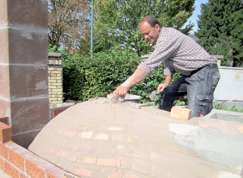 Der finale Stein des Gewölbes wird gesetzt