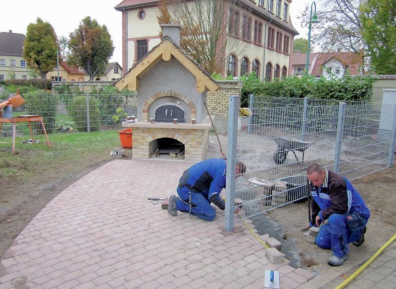 Pflaster und Zaun runden den Backhausplatz ab