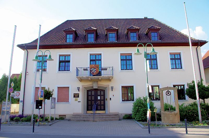 Rathaus Altrip mit Brunnen von 1759