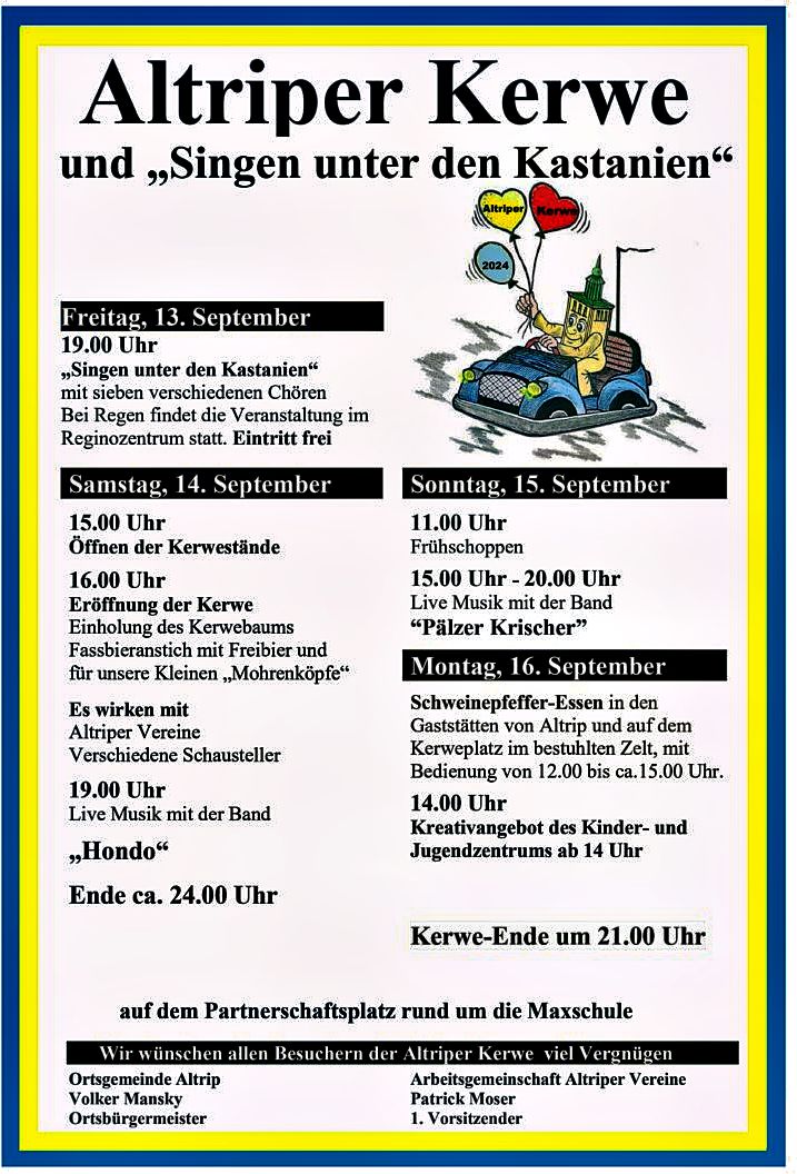 Veranstaltungsort: PARTNERSCHAFTSPLATZ, Maxstraße 22, 67122 Altrip